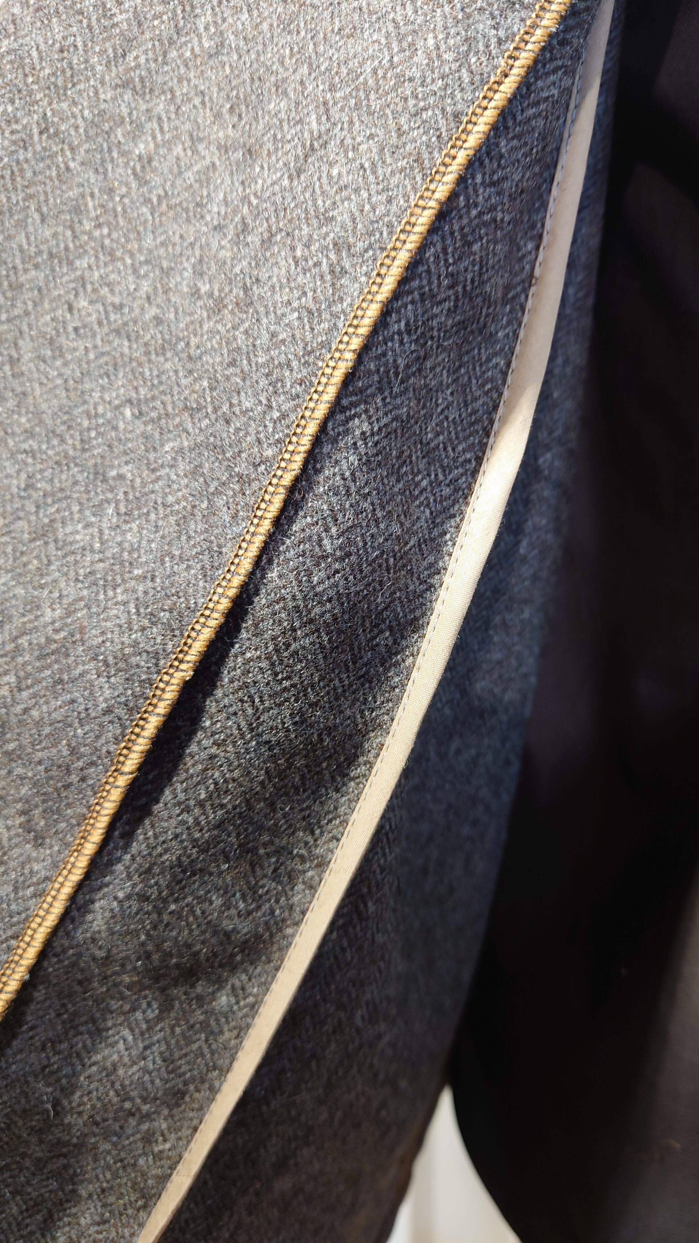 生地は柔軟なウールリネンヘリンボーンツイードを使用しています。