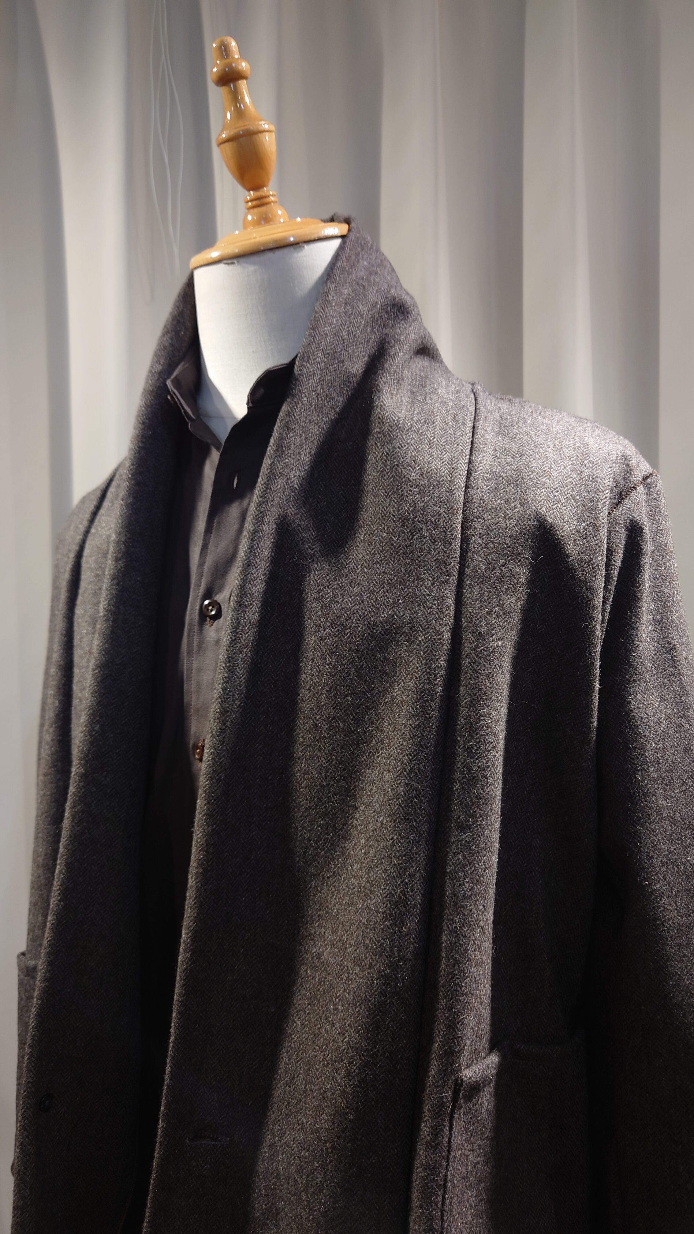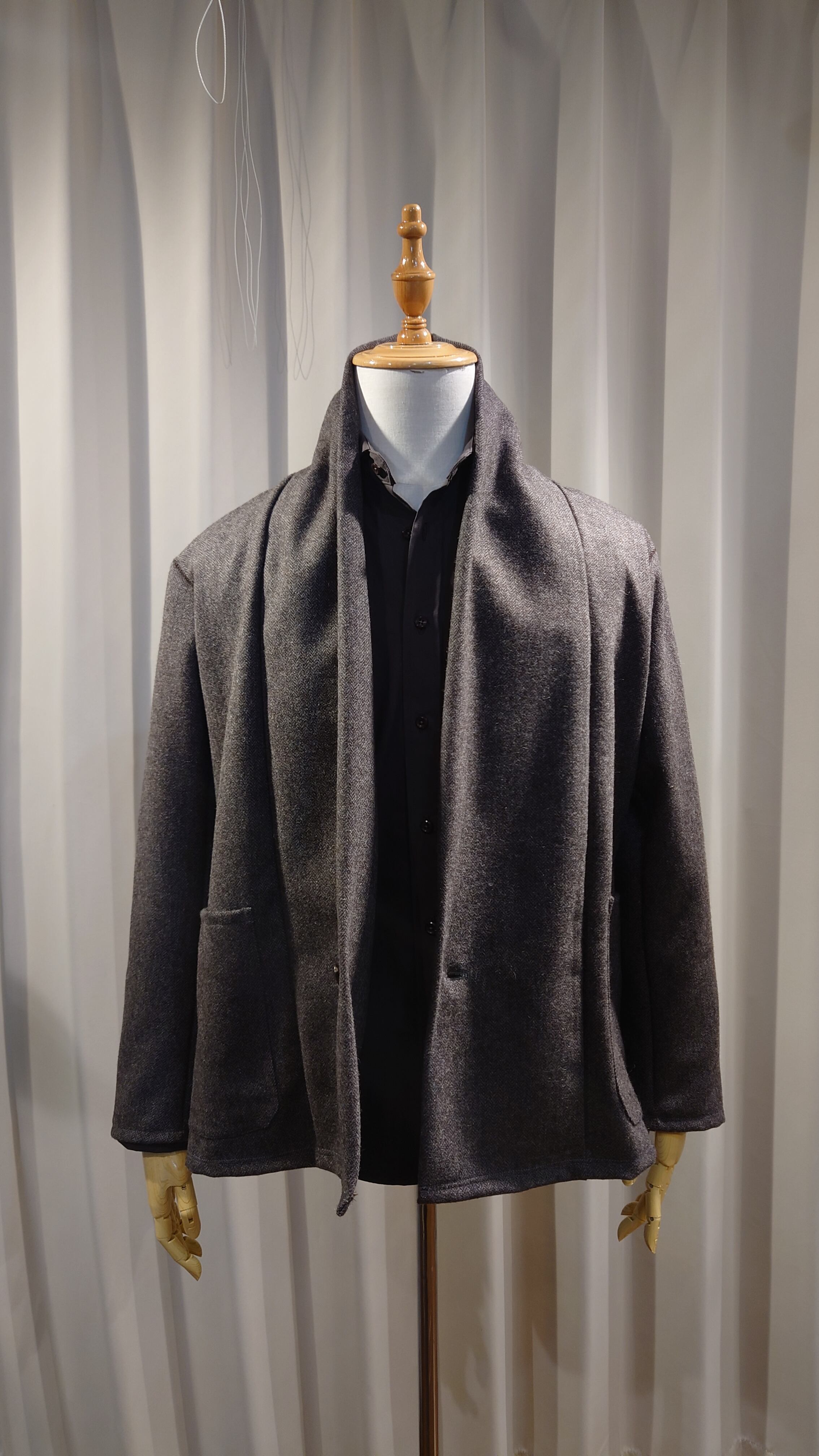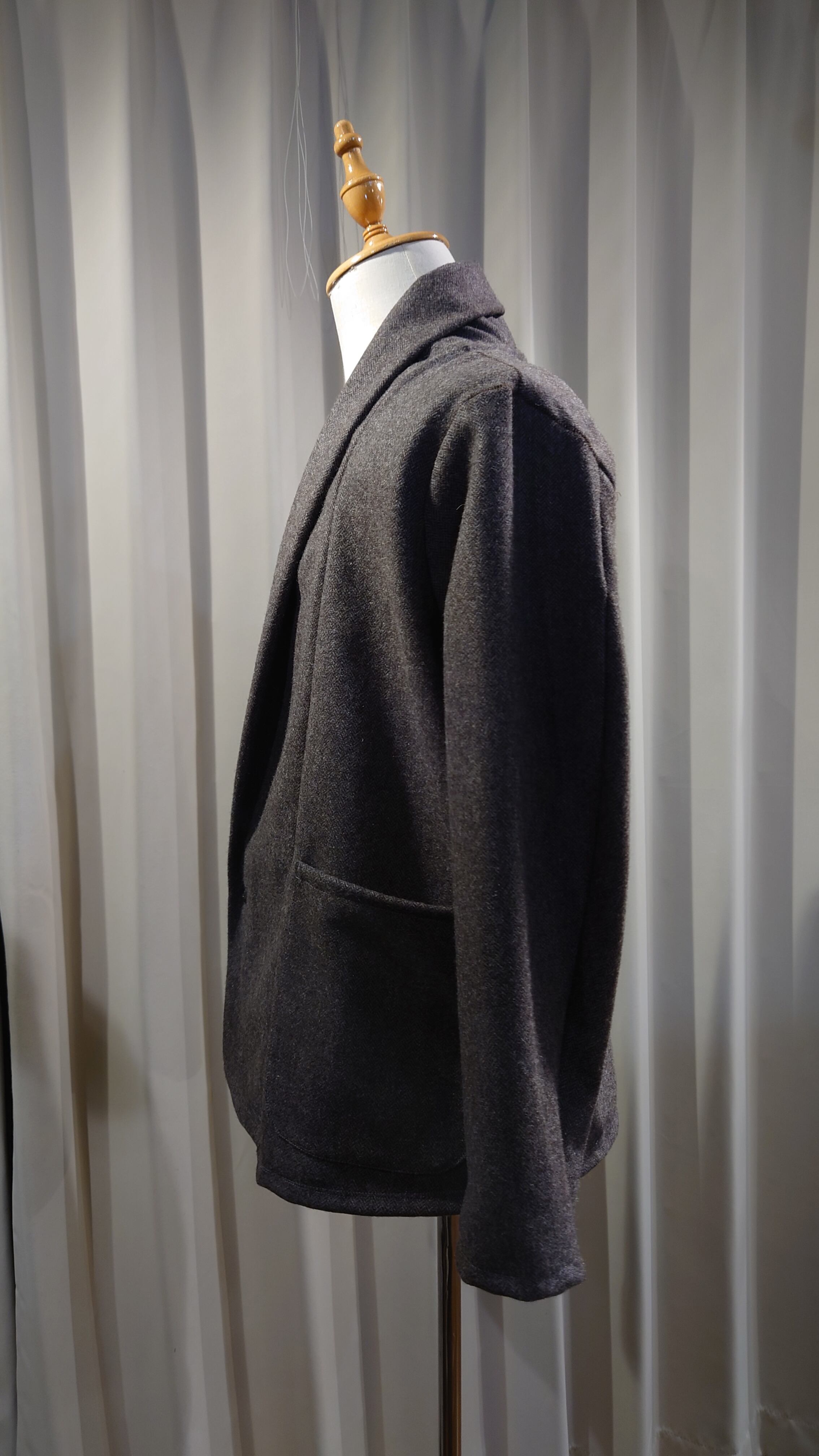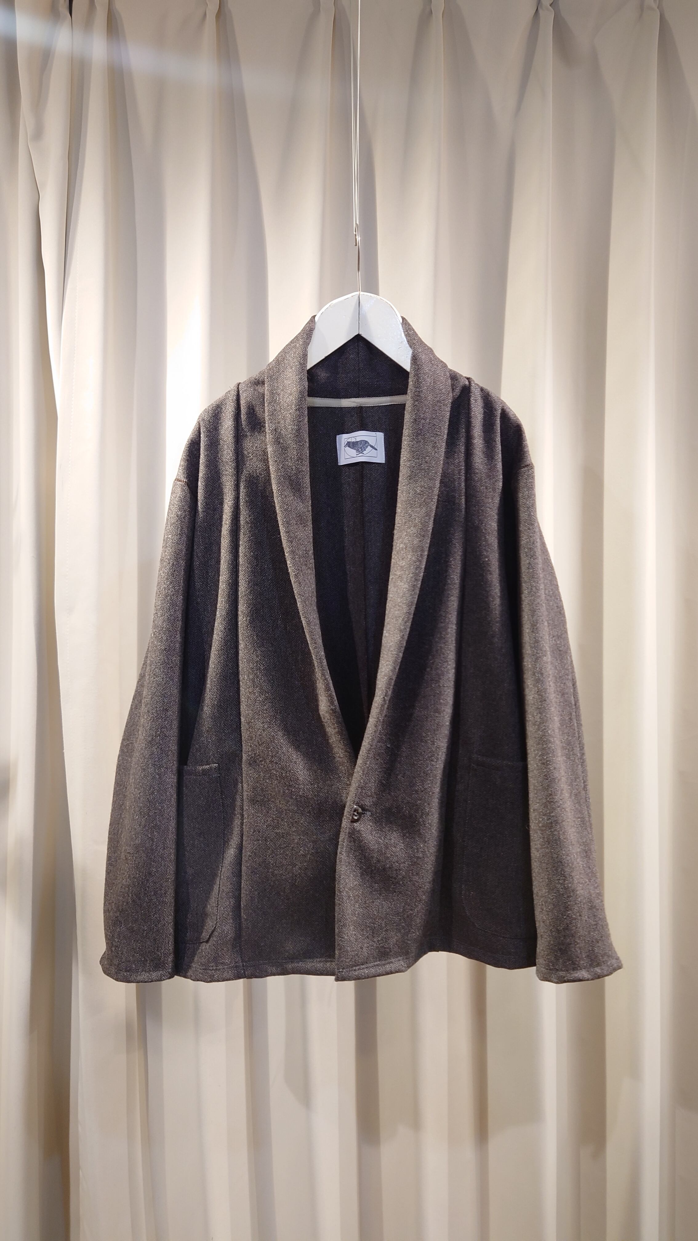 Garage.U.W WOOL LINEN HERRINGBORNE TWEED SHAWL COLLAR JACKET